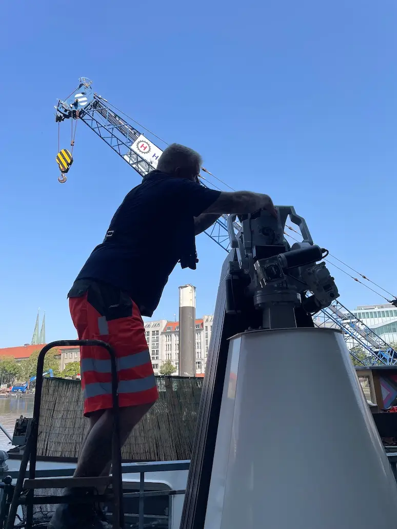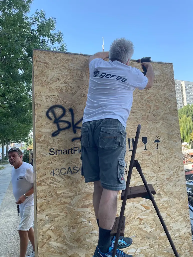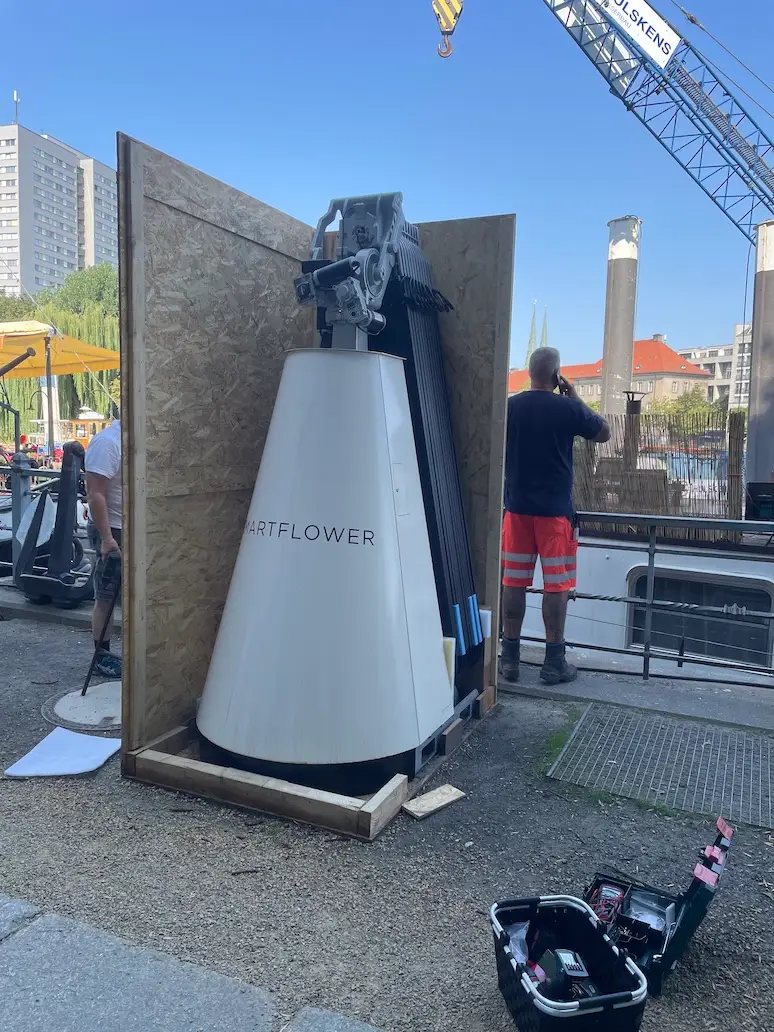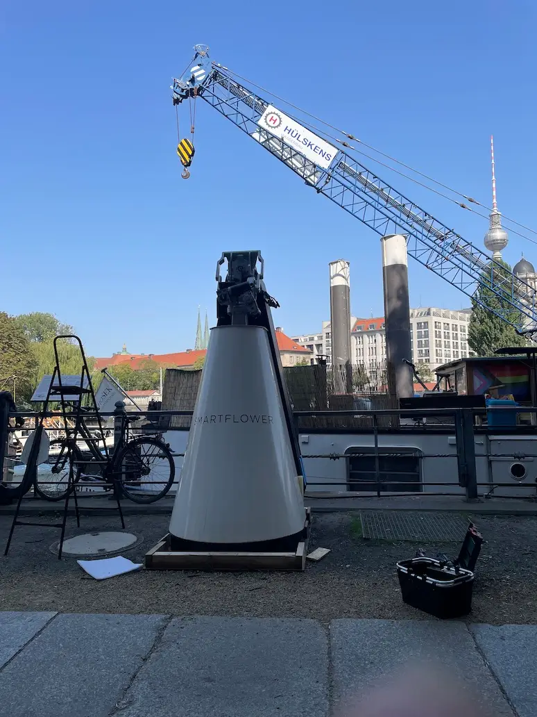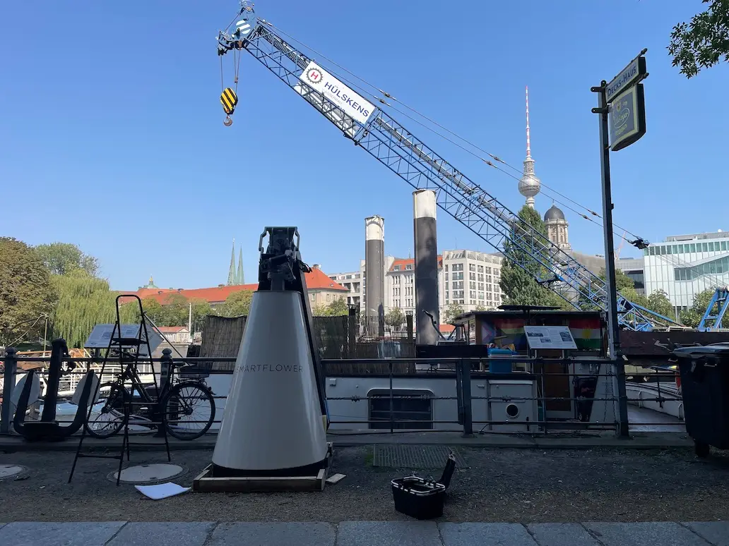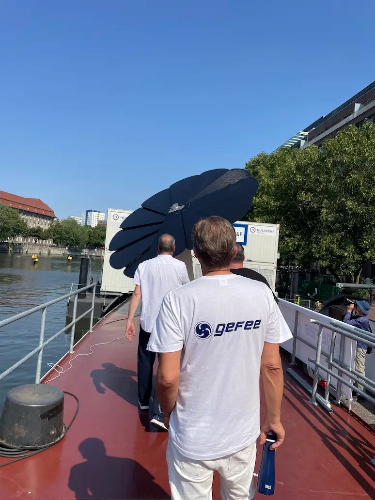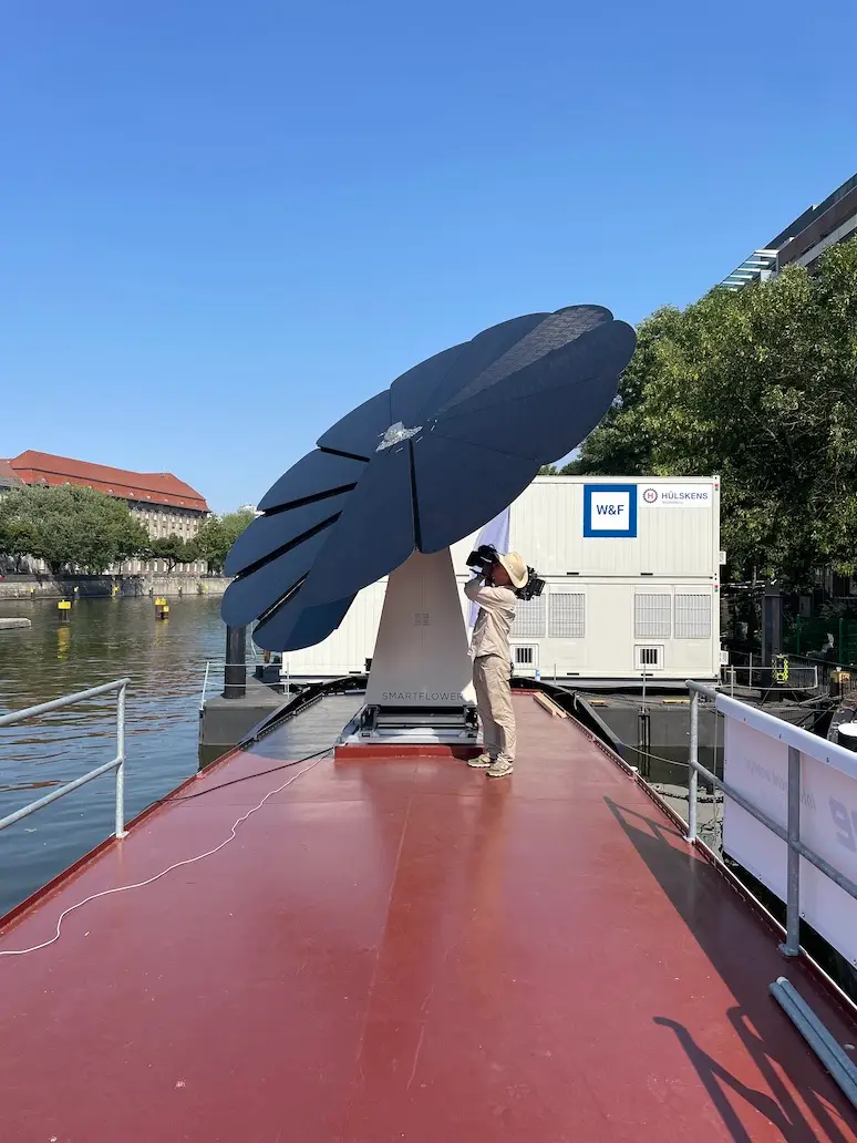 Im Historischen Hafen Berlin wird weltweit erstmals eine Solarblume auf einem Schiff installiert. Die fünf Meter hohe Photovoltaikblume soll künftig zur Energieversorgung des Hafens beitragen.
